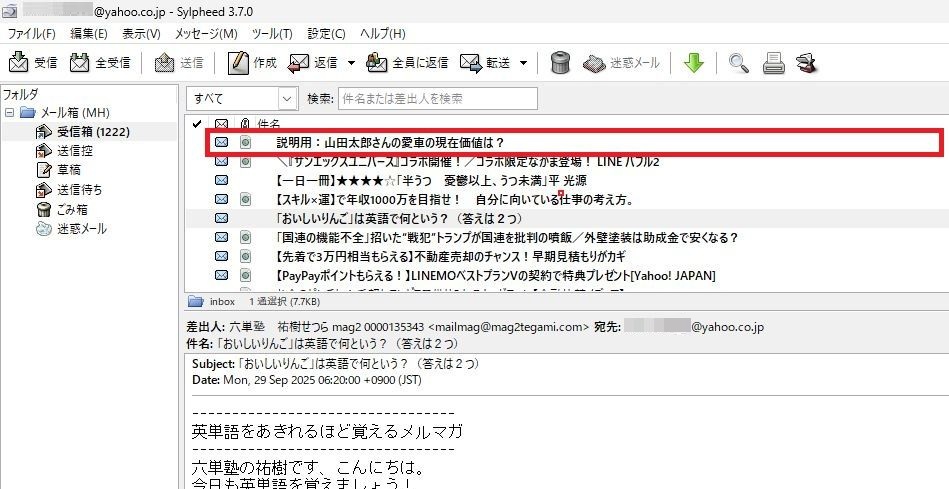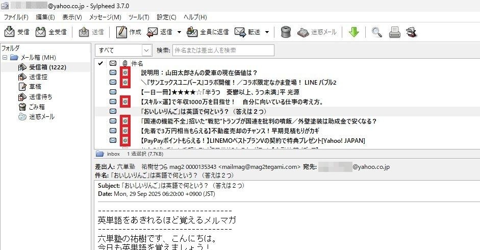 対象のメールの赤く囲った部分を1回左クリックをしてください。