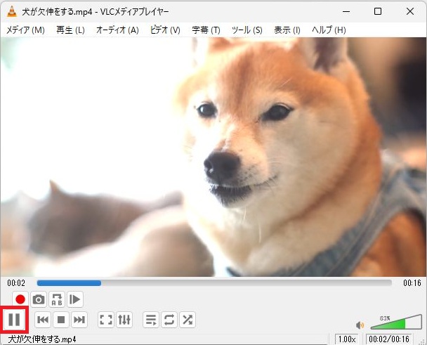 VLC media player 再生されている動画の一時停止方法