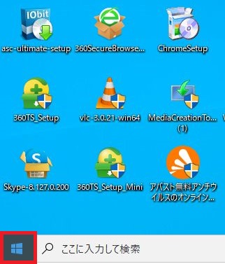 ソフトウェアのアンインストールをおこなうため、パソコンのデスクトップ画面の左下の「スタート」を1回右クリックし