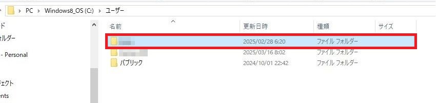 モザイク表示になっていますが「パソコンのユーザー名フォルダ」を2回連続で左クリックしてください。