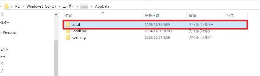 「Localフォルダ」を2回連続で左クリックしてください。