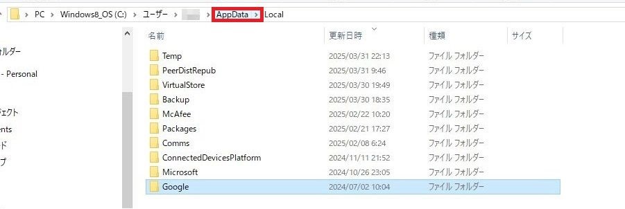 そのためこちらのページにWindows10の場合の削除をおこなうフォルダまでの移動方法を残しています。