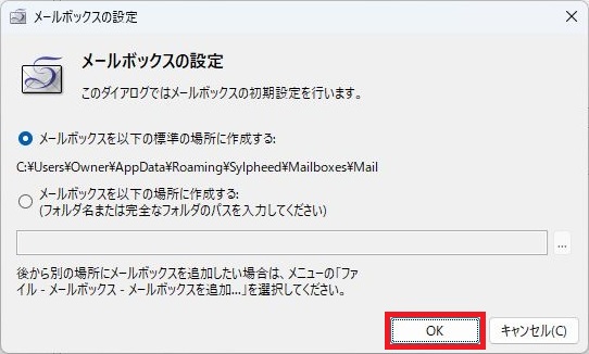 メールボックスの設定が表示されます。メールボックスを指定されない場合はそのまま「OK」を1回左クリックしてください。