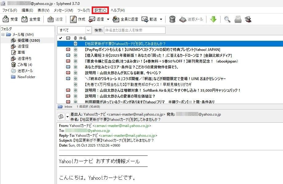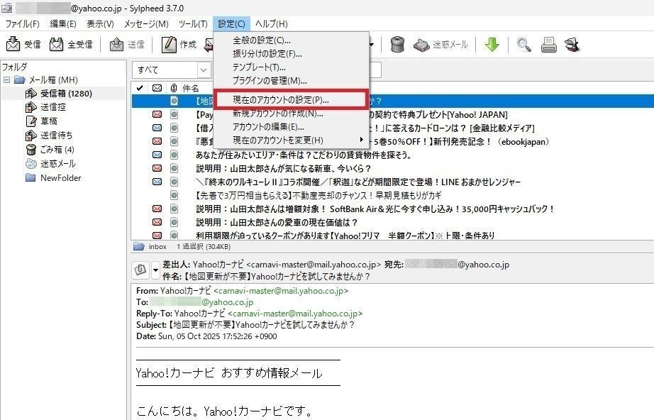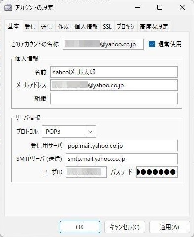 Yahoo!メールアドレス POPサーバー情報 Sylpheedメールソフト設定