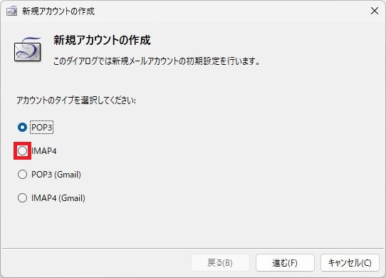 IMAP4の○をクリックしチェックが入った状態にしてください。