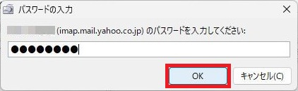 IMAPサーバーの設定が完了すると画面が切り替わりパスワードの入力表示がされます。空欄にパスワードを入力し「OK」を1回左クリックしてください。