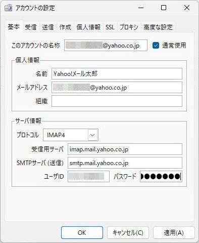 Yahoo!メールアドレス IMAPメールサーバー情報 Sylpheedメールソフト設定